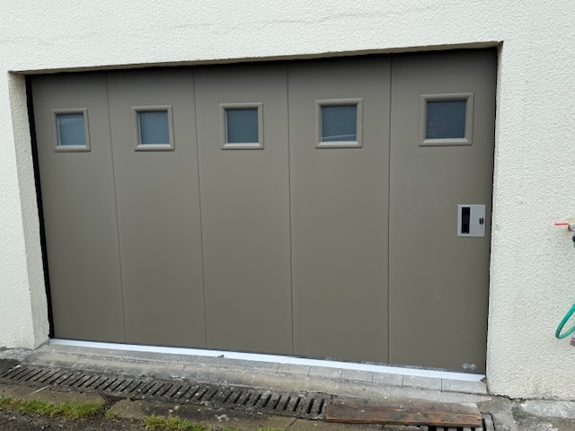 Porte de garage avec portillon : pratique pour un accès piéton sans ouvrir entièrement la porte.